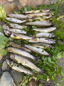 今回のイワナと焚き火小屋脇のさくらんぼ?です。